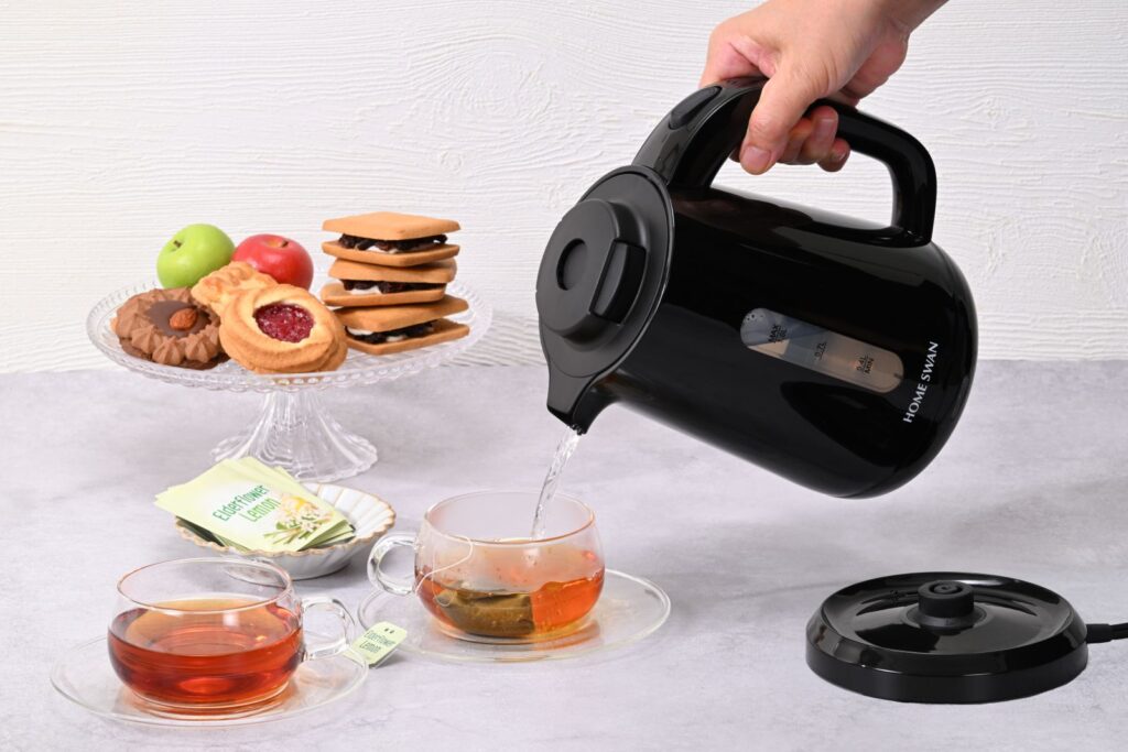 倒れてもお湯が漏れにくい安心設計で、万が一のときも被害を最小限に。空だき防止機能付きなので、水が入っていない状態でも自動で加熱をストップします。さらに、お湯が沸くと自動で電源が切れるため、毎日の使用も安全・快適です。